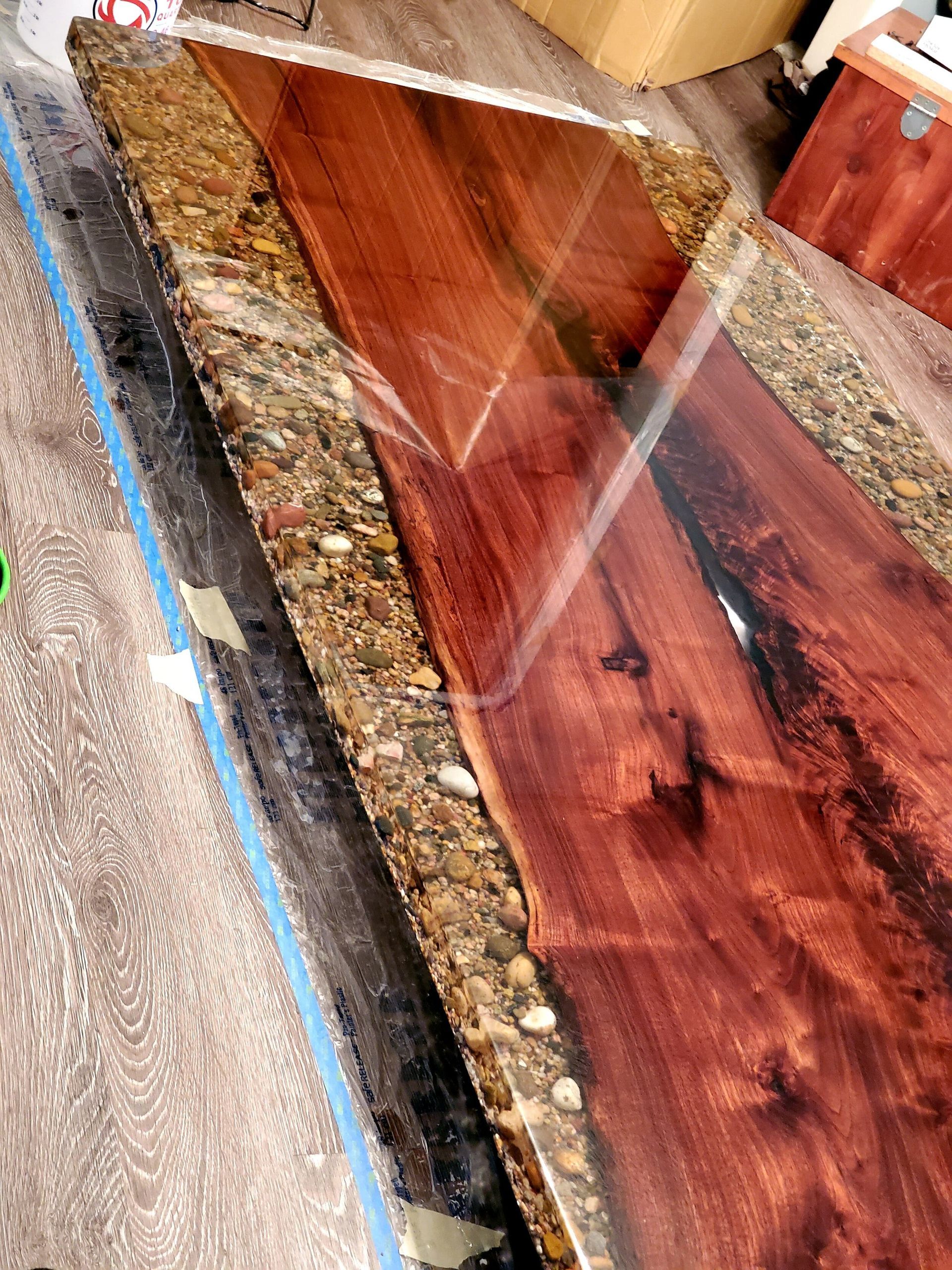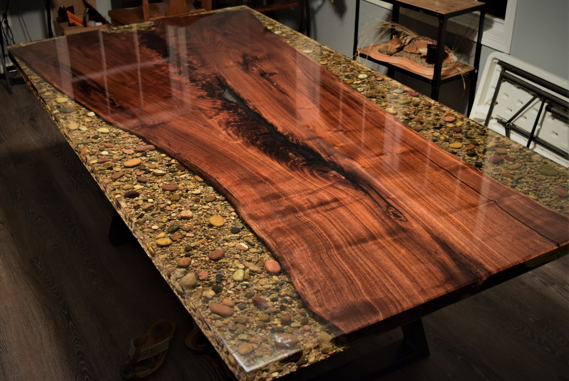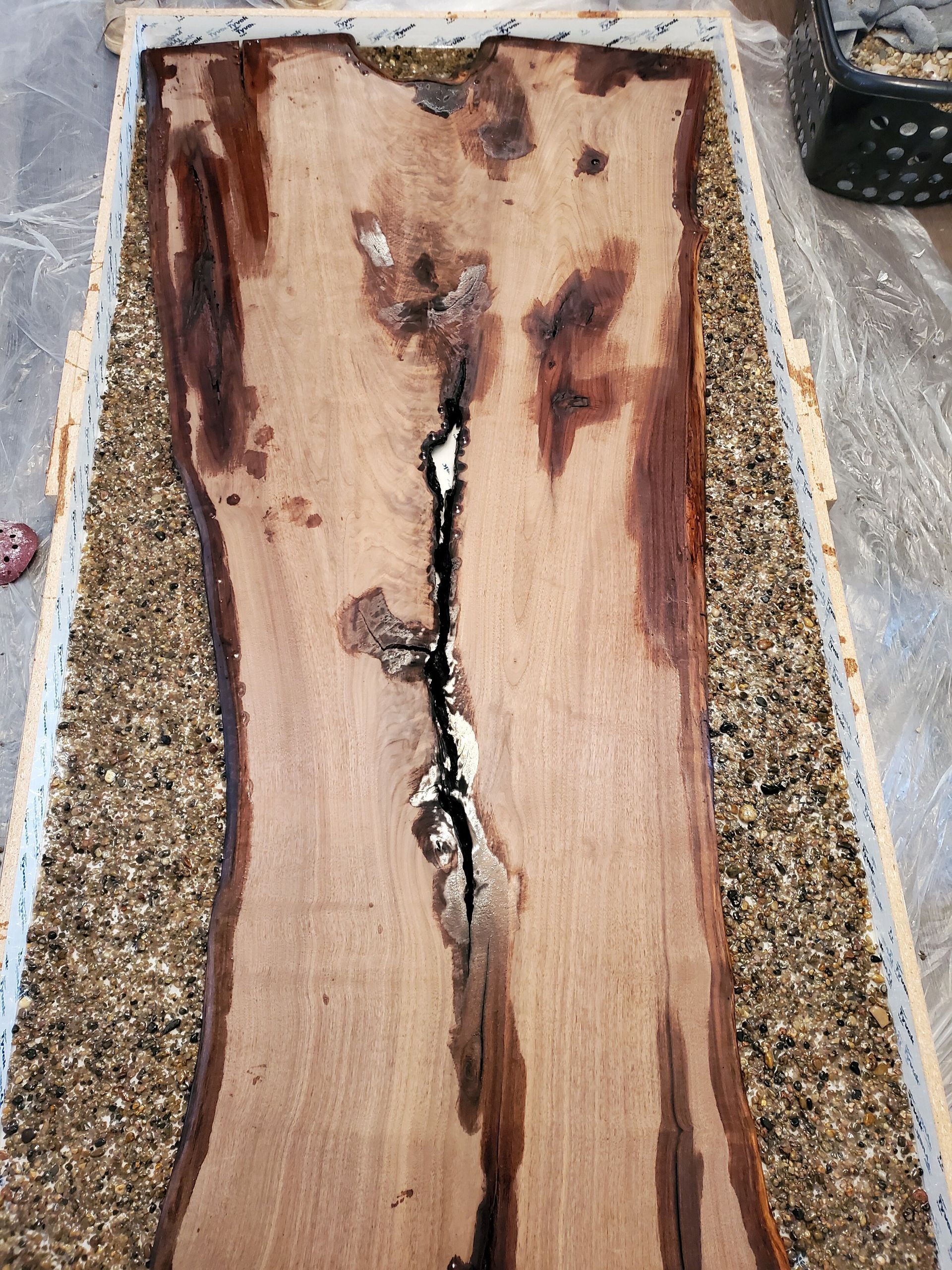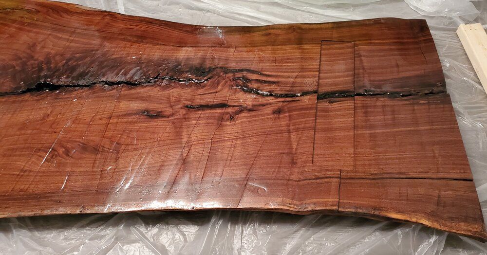 Stunning, highly figured curly burl black walnut cookie piece finished with a satin black epoxy center. Protected with BallistiX CounterAttack PLUS. This was an absolute one of a kind piece. We don’t come wood that is this beautiful every day!