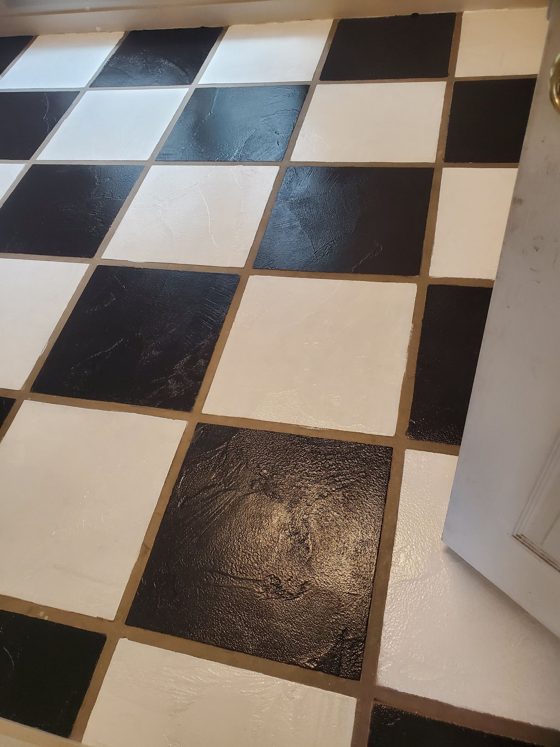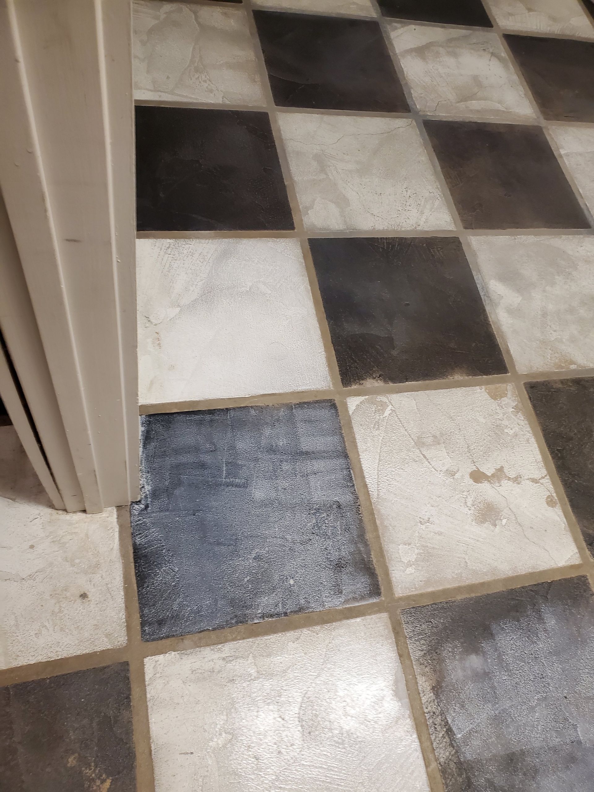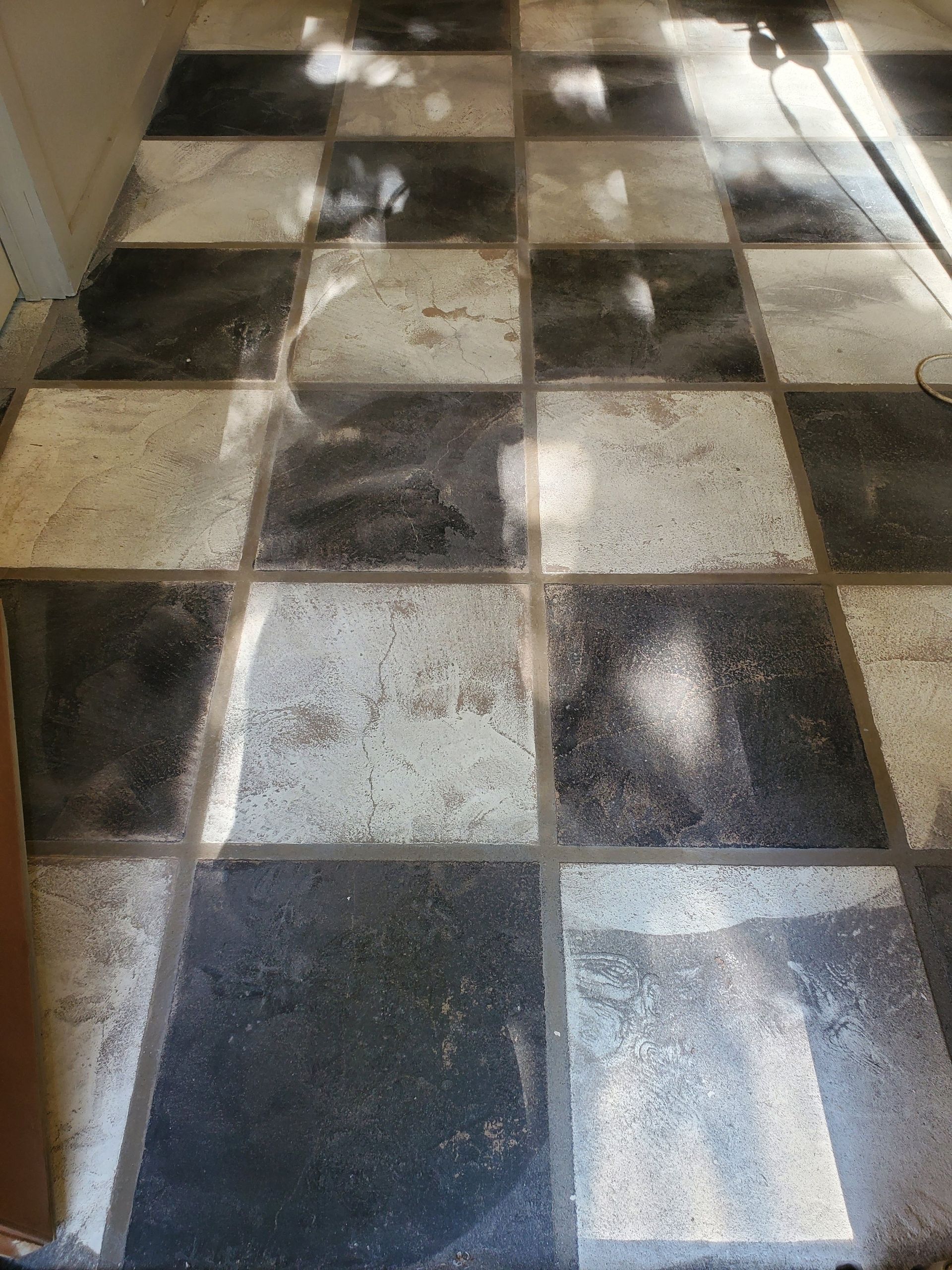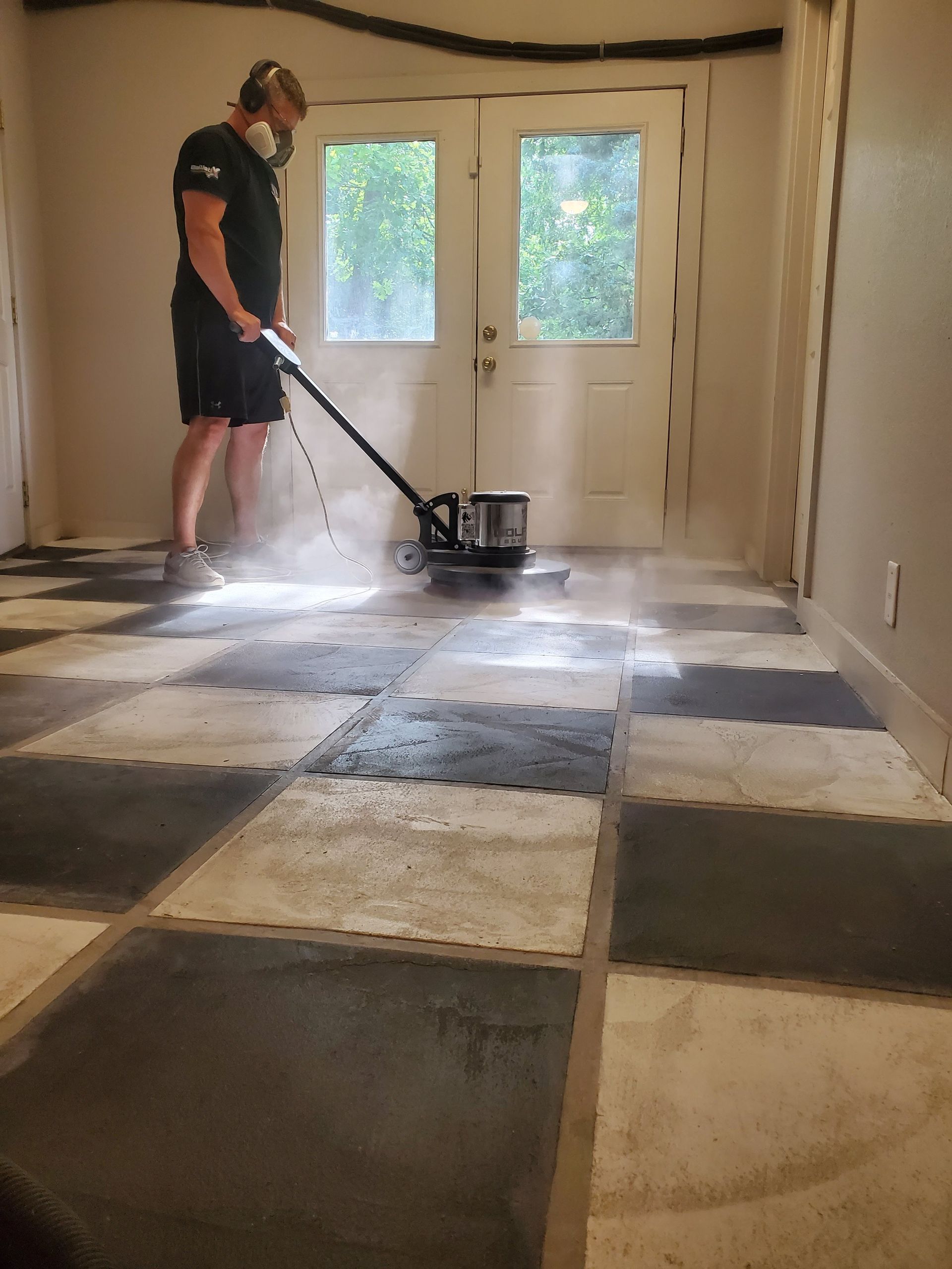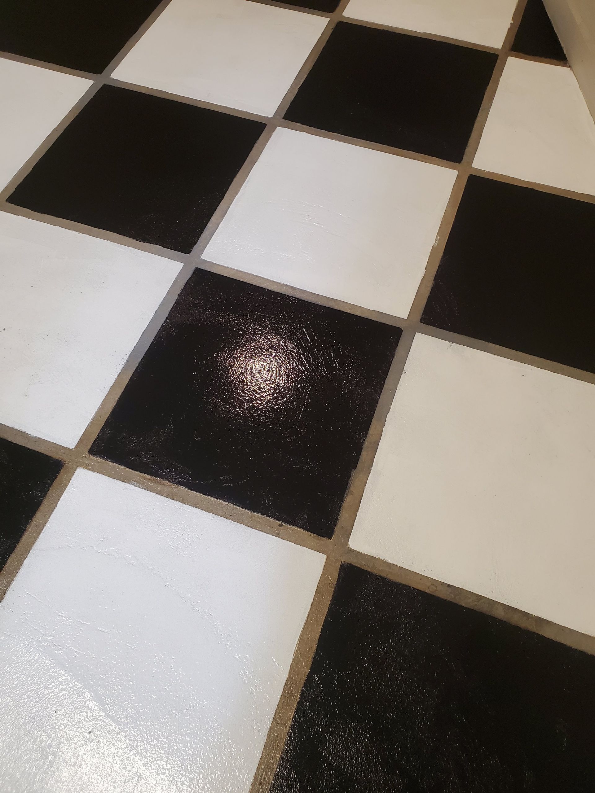 This floor was a Black and White concrete overlay that was completed years ago. We came in and returned the Black to being Black and the White to being White. Then we protected the refurbishment with our BallistiX CounterAttack Topcoat. We added in an antislip additive since this floor was in the boat house of Table Rock Lake.