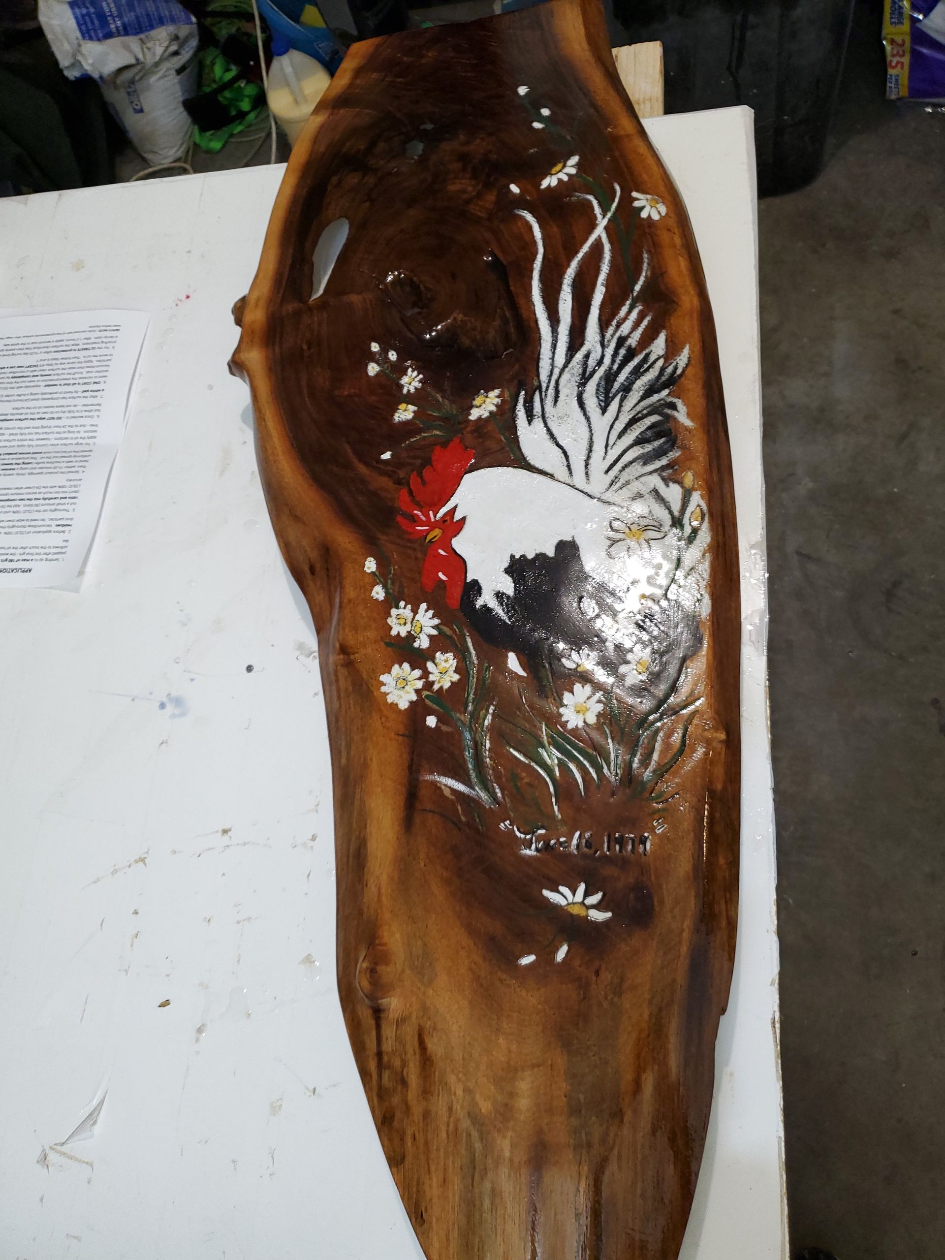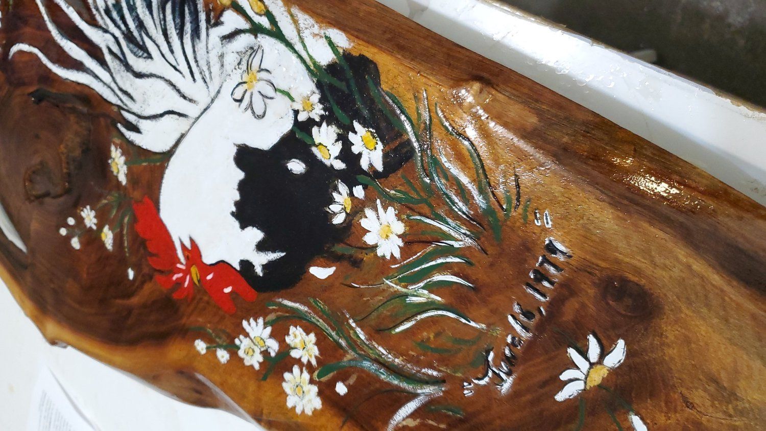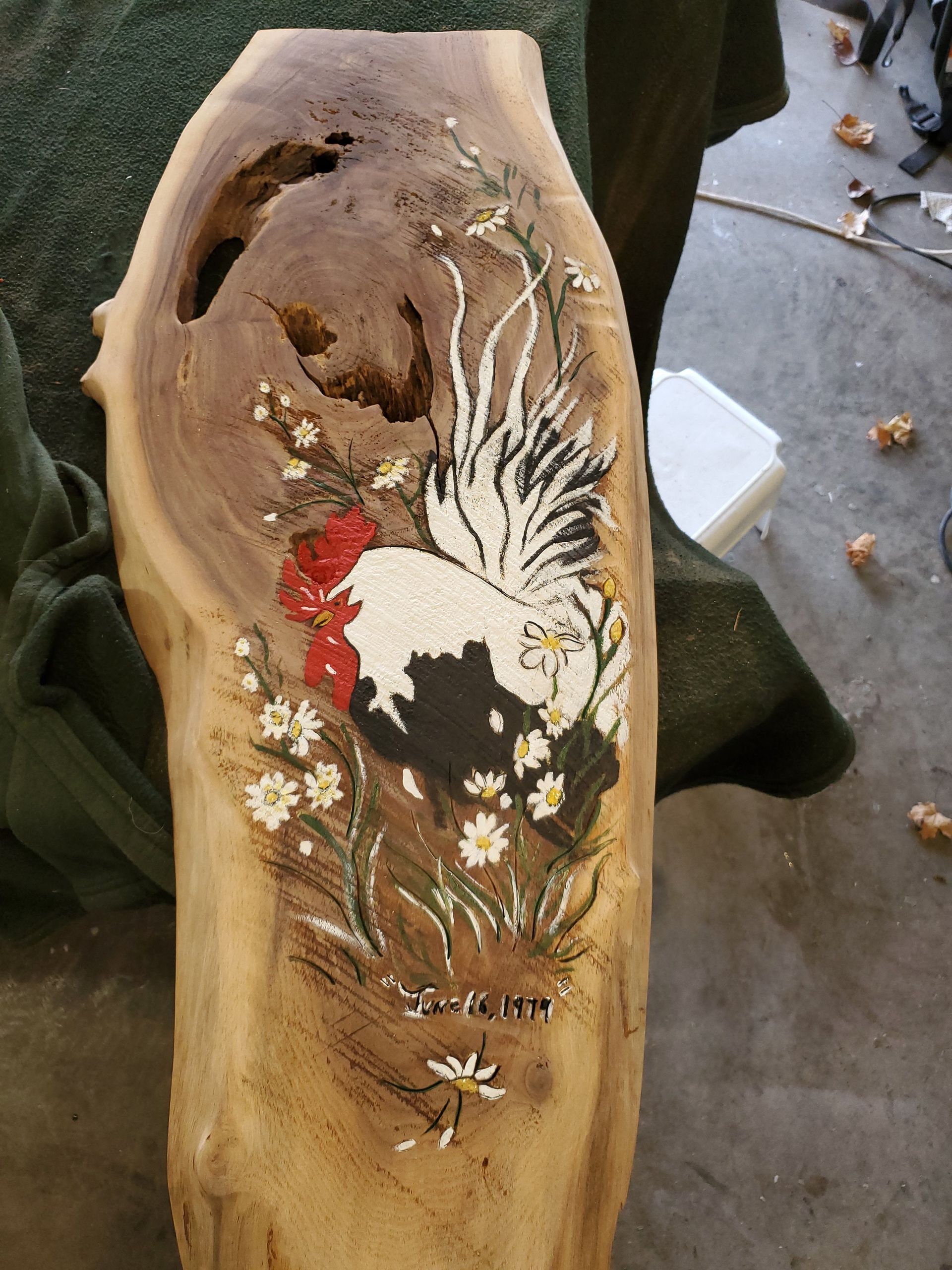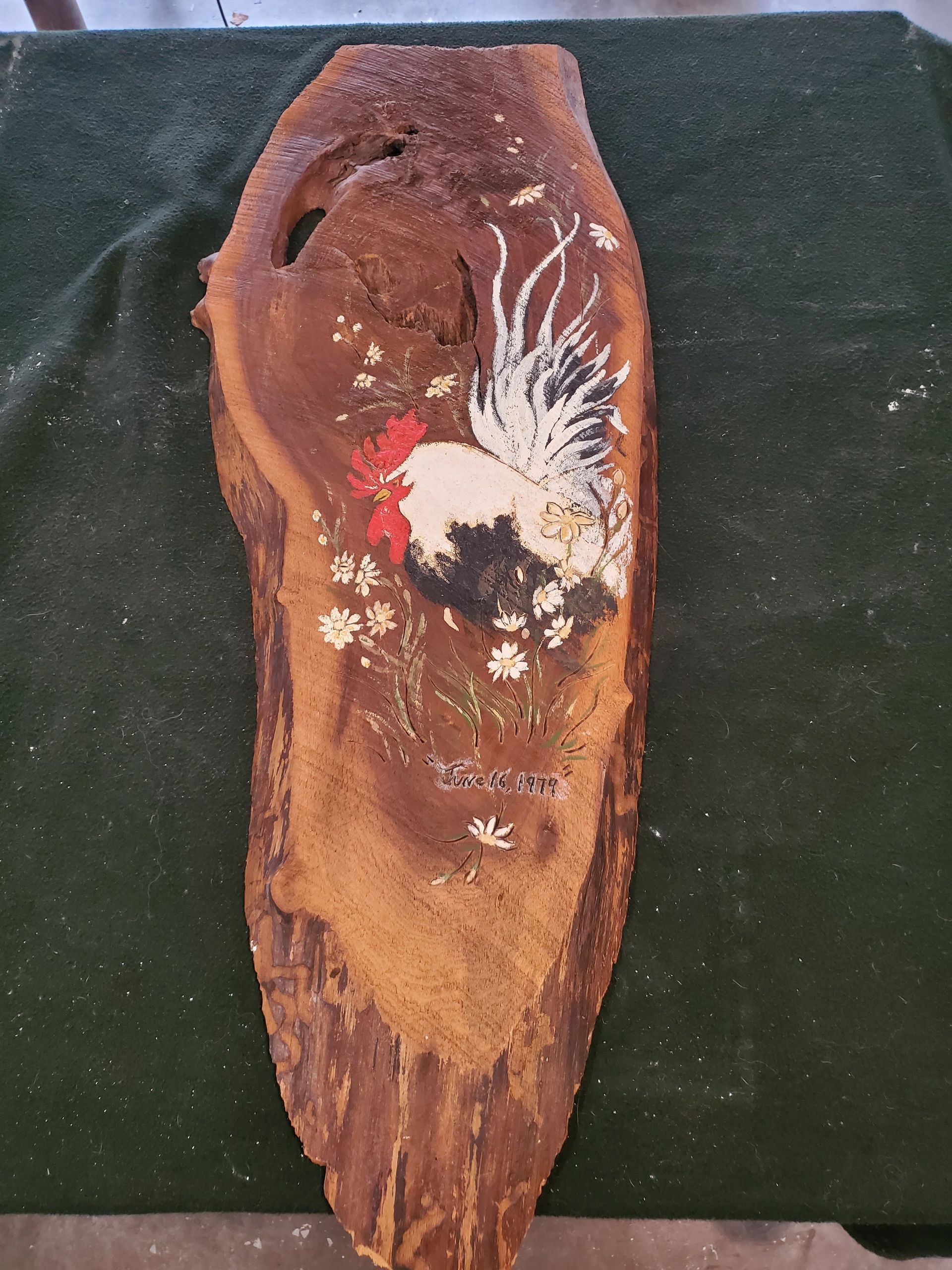 A family couple was gifted this piece of wood with a custom painting on it for their wedding gift from June 1979. Over the years it has faded, and the wood has dried up.