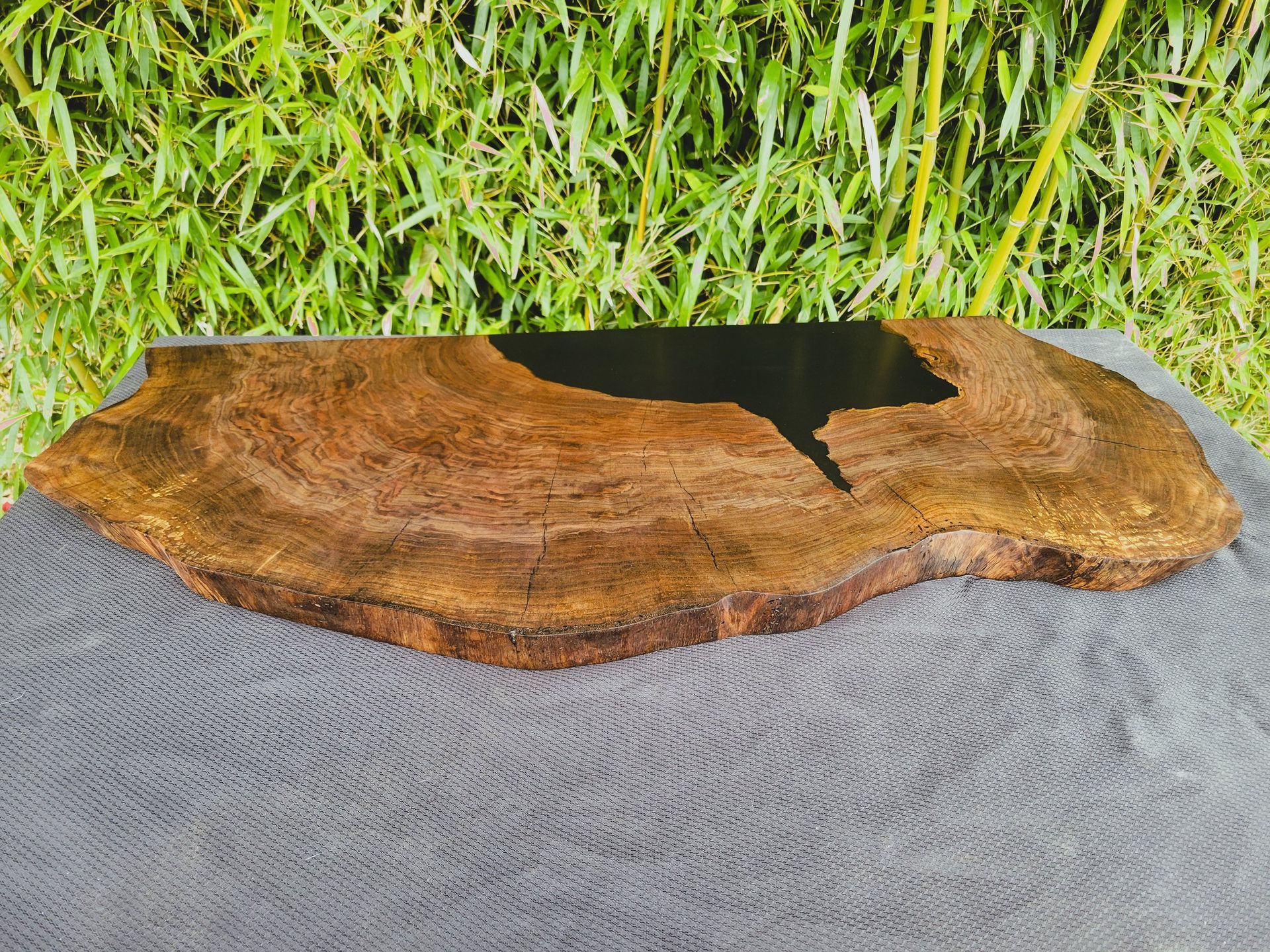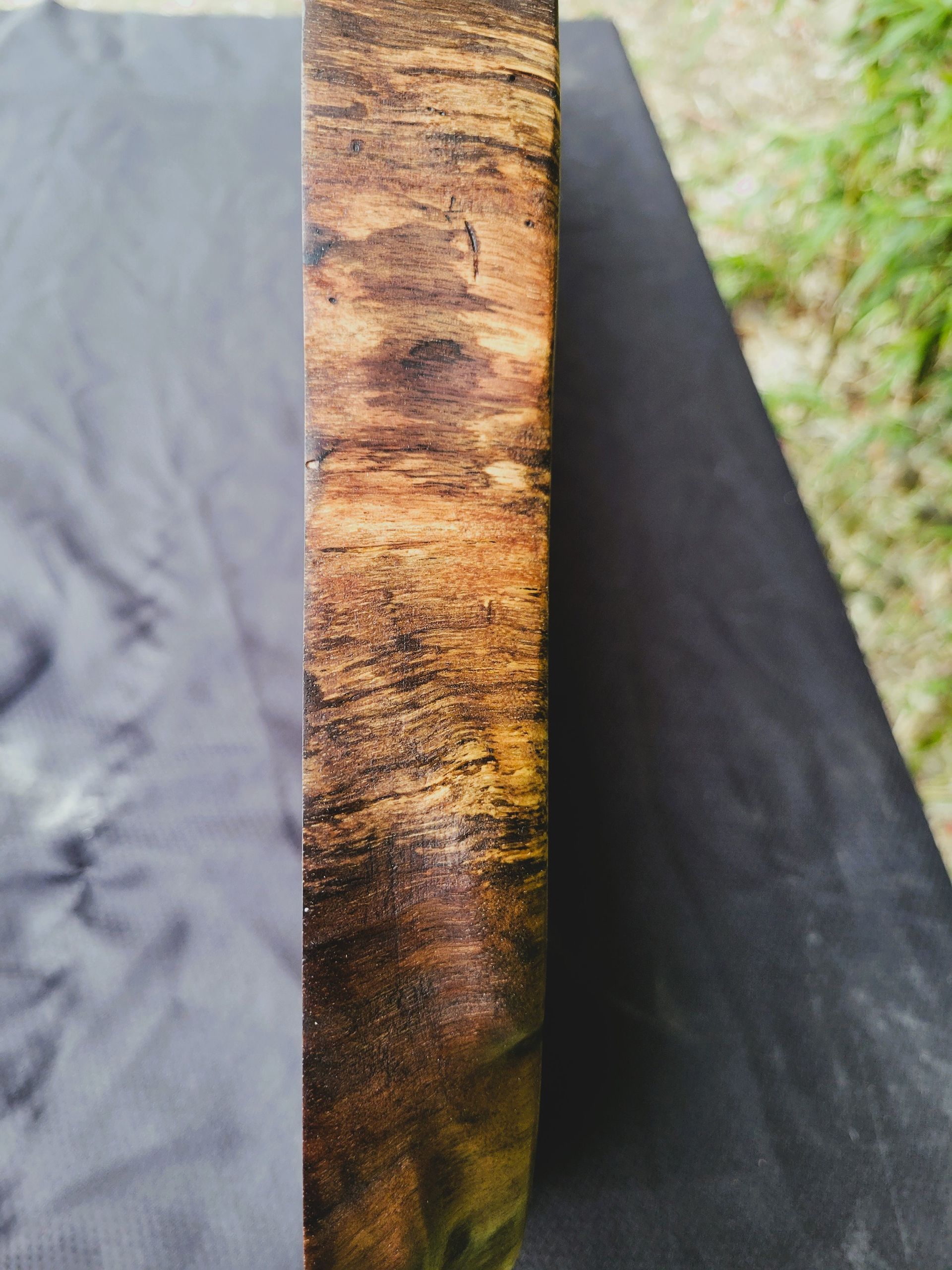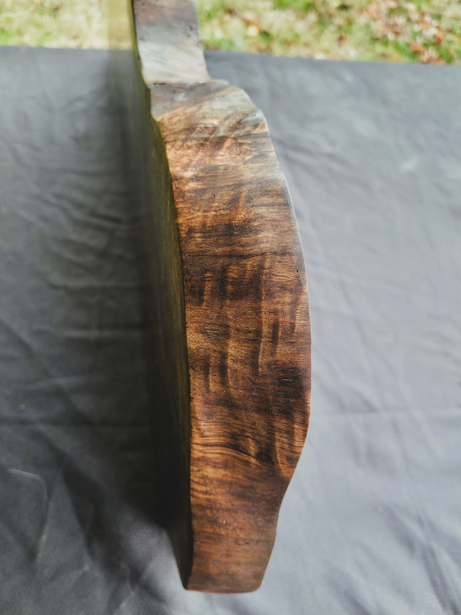 Stunning, highly figured curly burl black walnut cookie piece finished with a satin black epoxy center. Protected with BallistiX CounterAttack PLUS. This was an absolute one of a kind piece. We don’t come wood that is this beautiful every day!