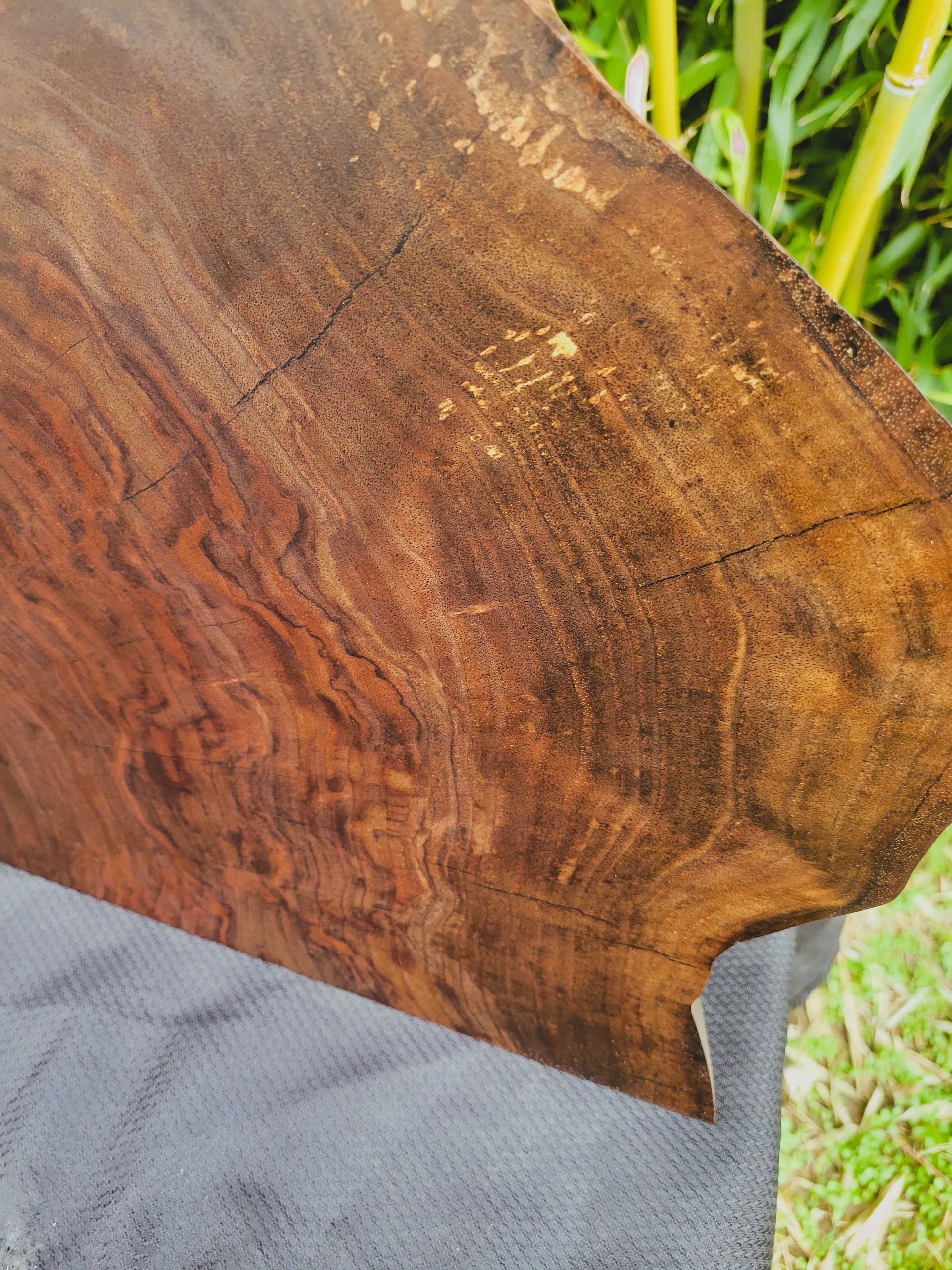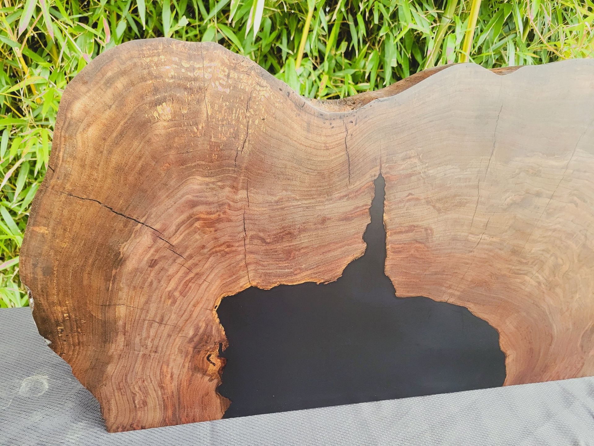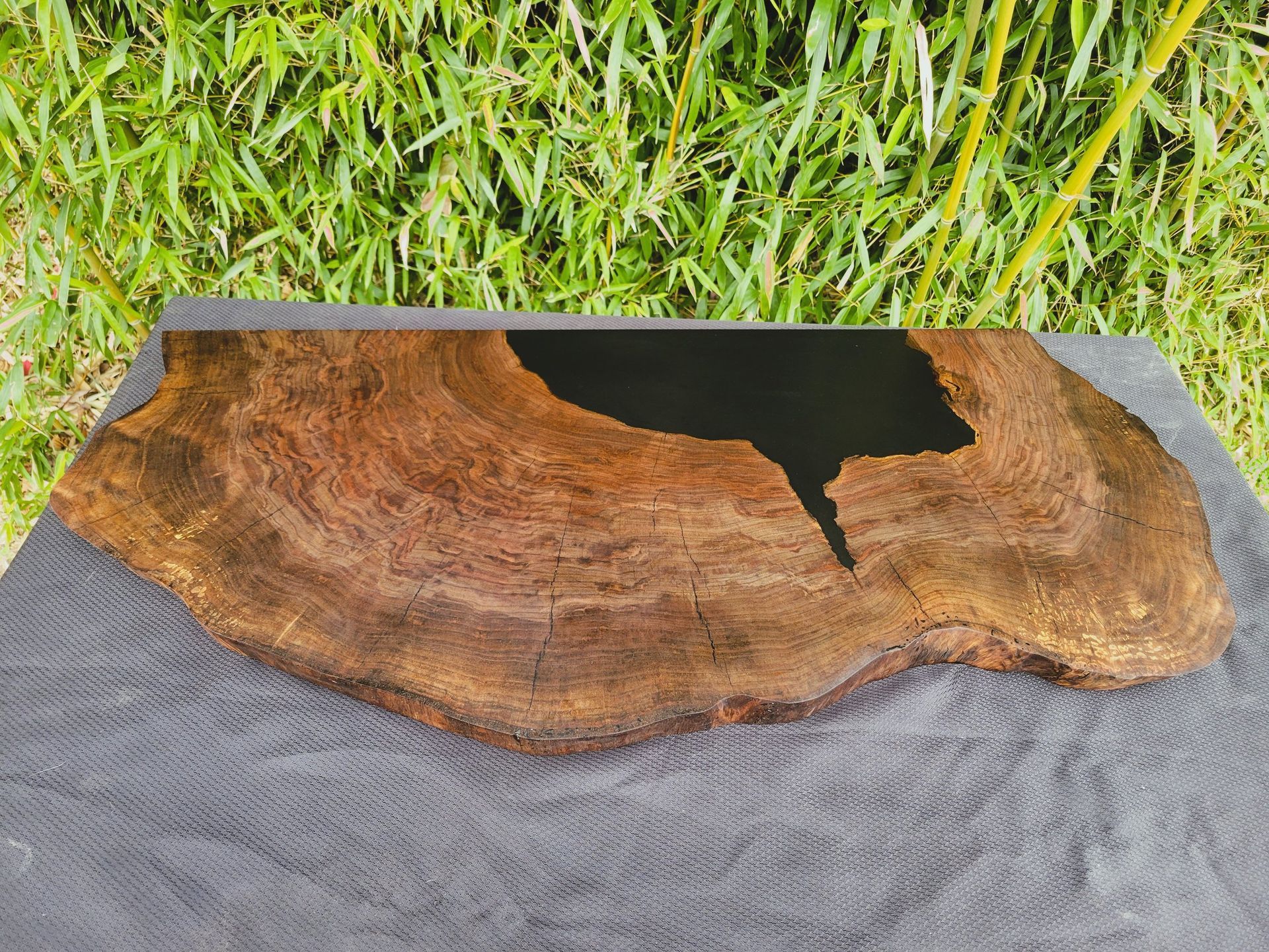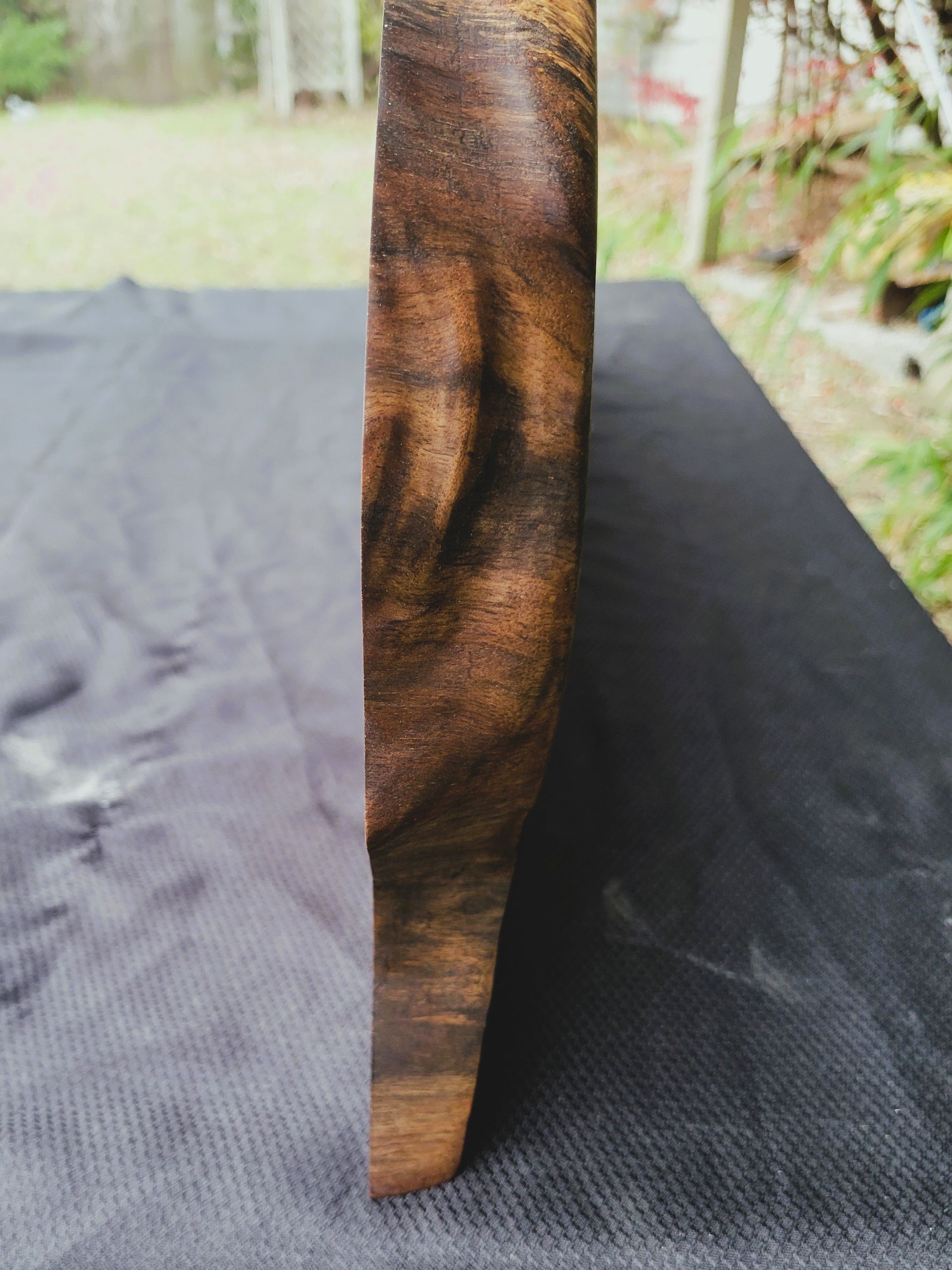 Stunning, highly figured curly burl black walnut cookie piece finished with a satin black epoxy center. Protected with BallistiX CounterAttack PLUS. This was an absolute one of a kind piece. We don’t come wood that is this beautiful every day!
