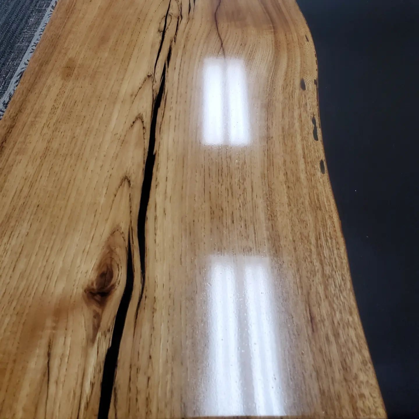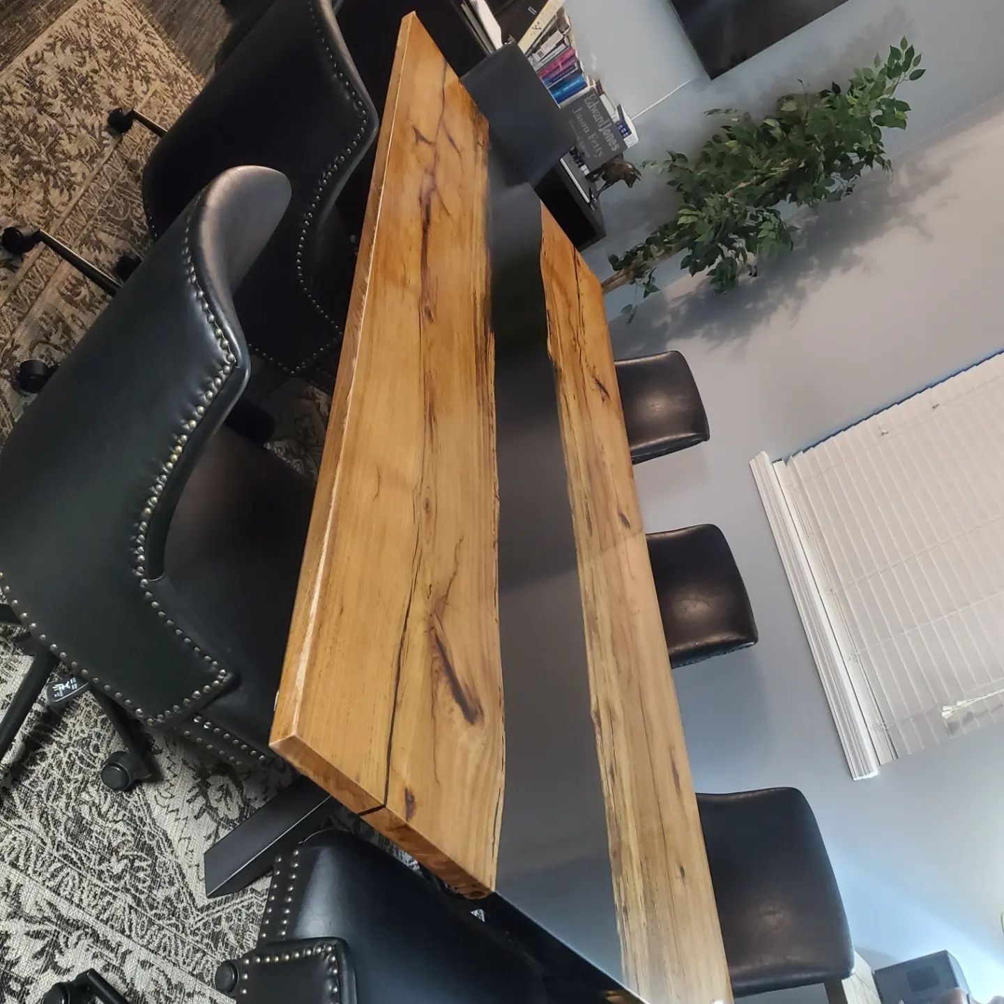 Spalting is caused by mold inside the tree prior to the tree being harvested. These sycamore slabs have so much spalting character throughout. This custom desk is 6ft 2in long, x 37in wide with a live edge on one side. This is sealed with a thin epoxy flood coat, and topcoated with BallistiX CounterAttack Plus to protect it.